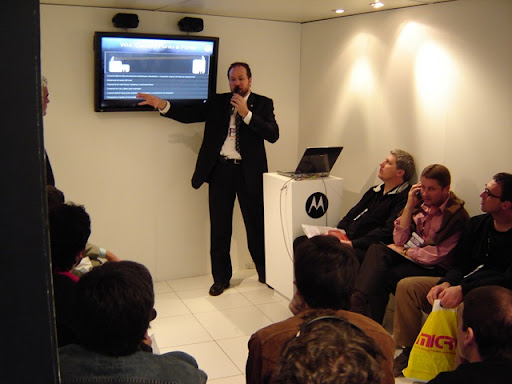 Como se puede apreciar en la imagen, este era el "salón" donde el disertante nos "informó" sobre las diferentes aplicaciones de las tecnologías de Motorola, el cual era totalmente abierto permitiendo el ingreso de cualquier persona que pasara por el stand, lo cual genero mucho malestar entre los asistentes previamente acreditados, y otro tema fue la duración del seminario que fue de ¡¡¡¡¡15 minutos!!!!! en los cuales no escuchamos ningún tipo de contenido técnico ni mucho menos, tampoco entregaron certificados a los asistentes.